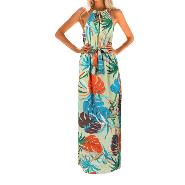 women's dress 2019 Fashion Women Print Boho Floral Long Maxi Dress Sleeveless Evening Party Summer Beach Sundress O-Neck #30