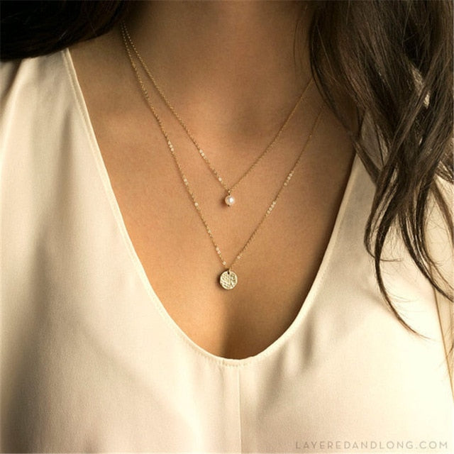 fuyo Star Moon Pendant Necklace Boho Geometric Crystal Layered Necklaces for Women Girl Waterdrop Collar Choker Jewelry